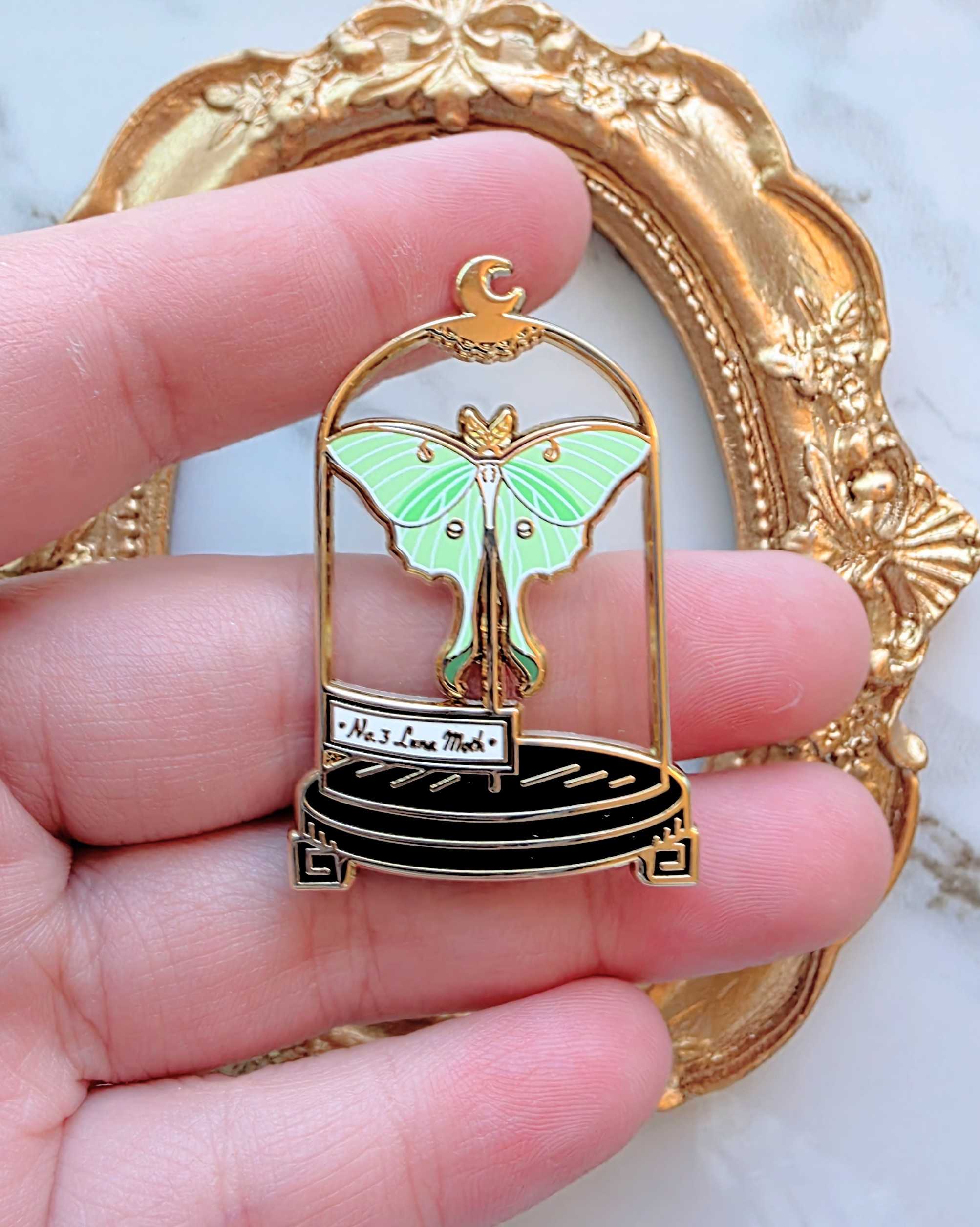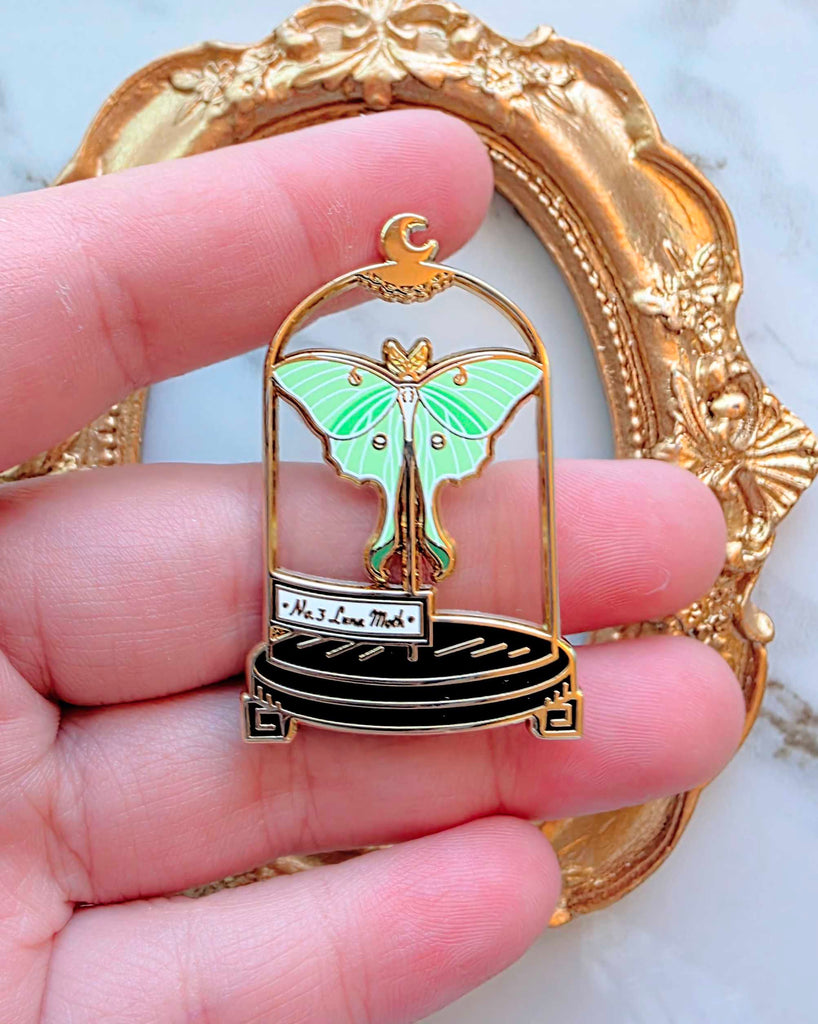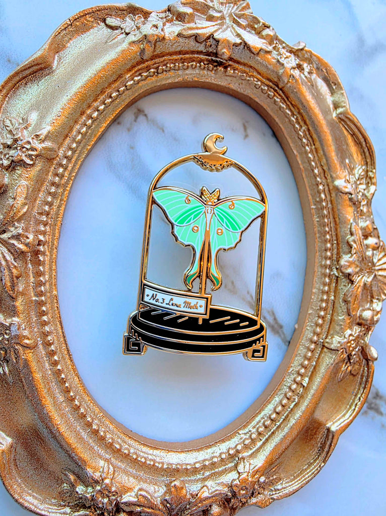 1.5 inch hard enamel pin inspired by my own cabinet of curiosities. This pin features a "stained glass" epoxy effect. Comes with 2 rubber clutches.