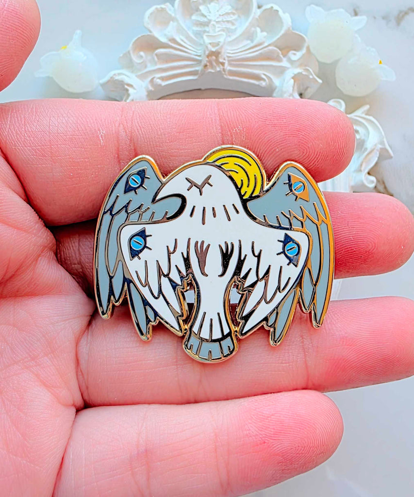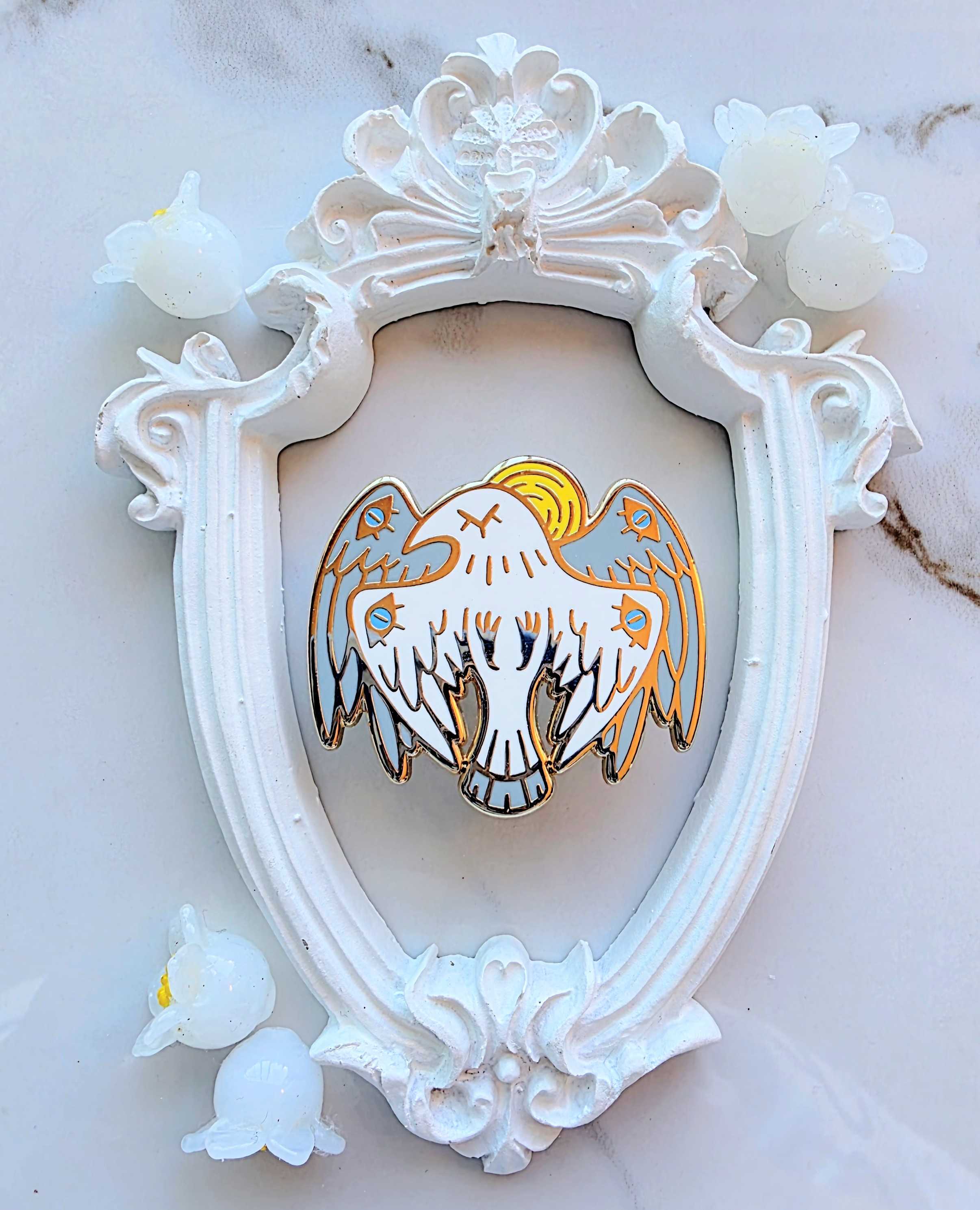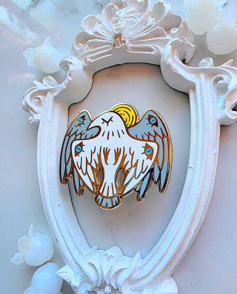 1.5 inch gold hard enamel pin variant of the black version "Omen."