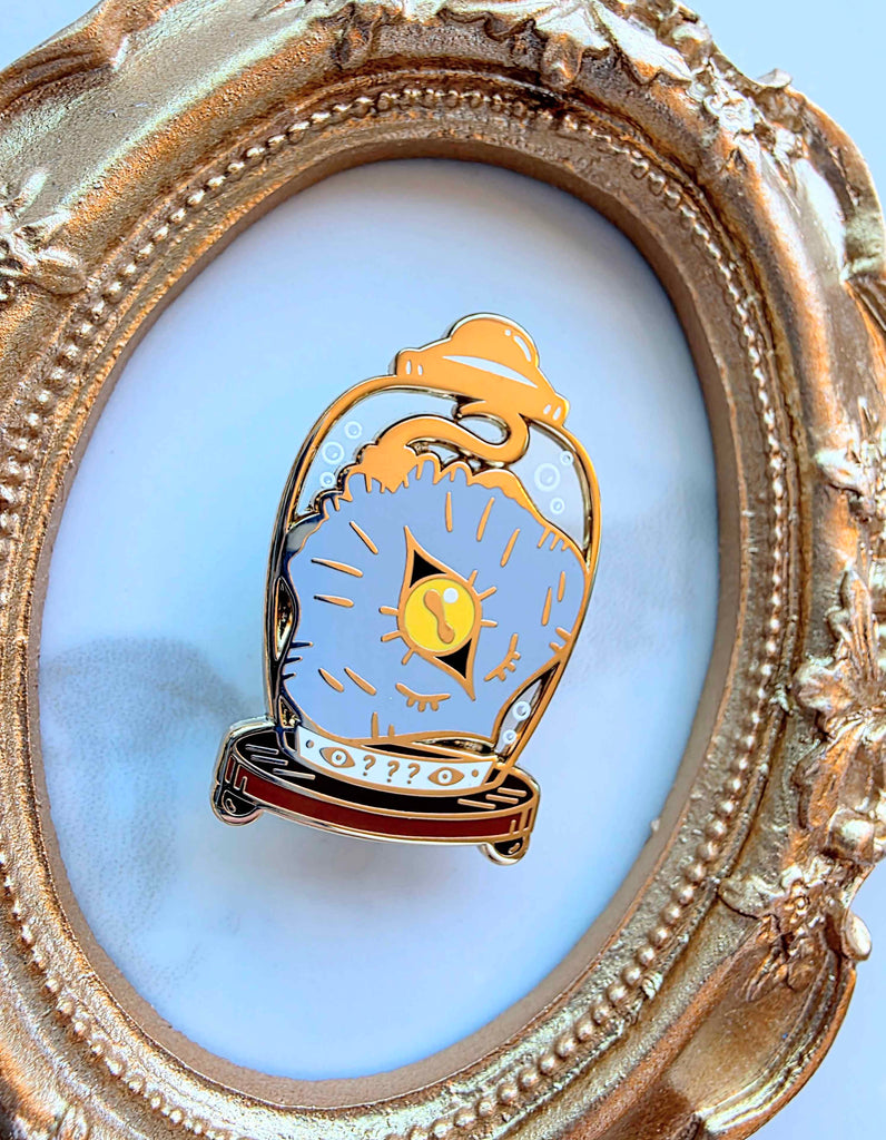 A limited 1.5 inch hard gold enamel special pin that was only available as a freebie for the Oddities Obscura backerkit group campaign, now available for a short time in limited quantities to the public.